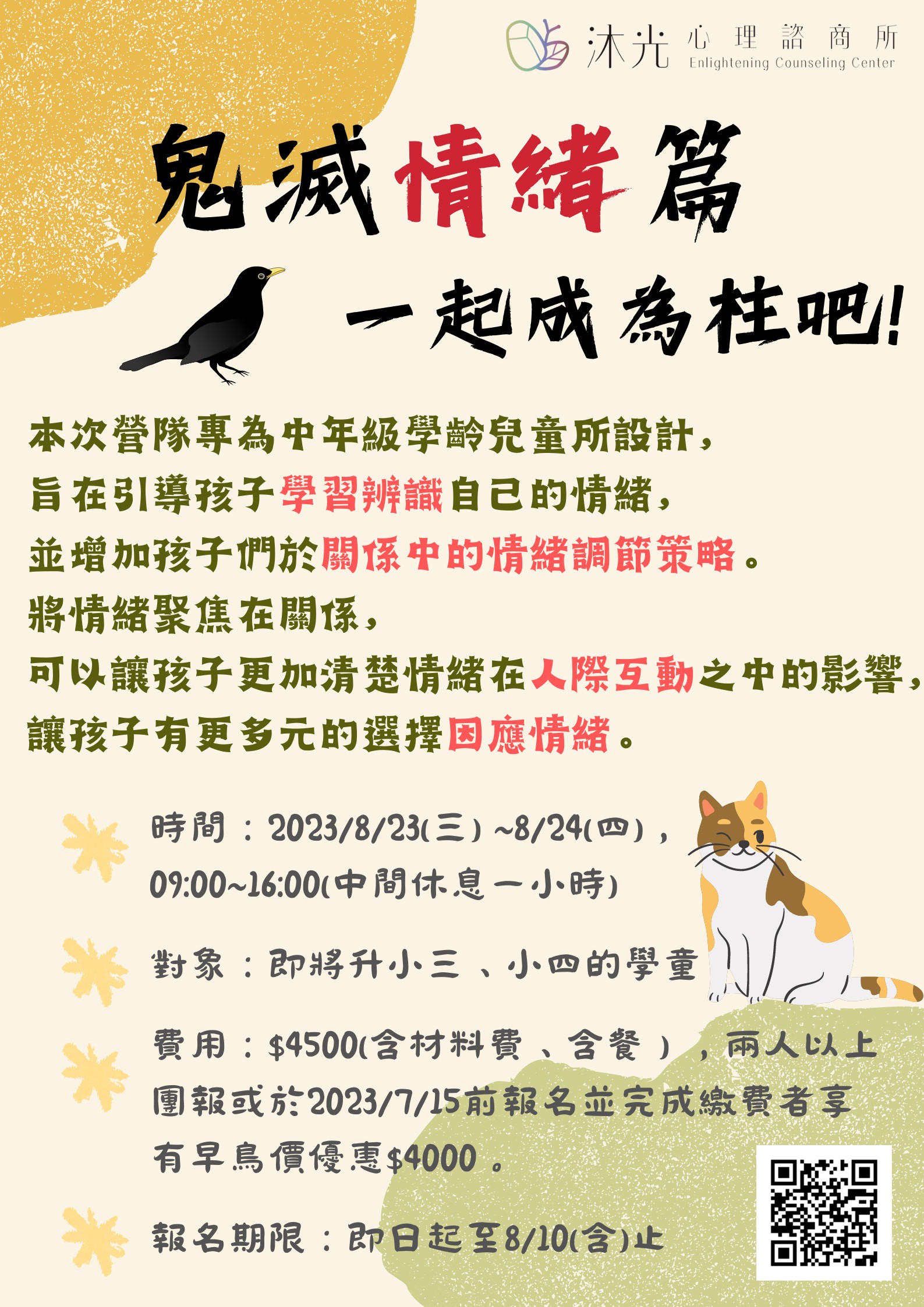 (報名截止)暑期兒童收心操營隊~『鬼滅情緒篇~一起成為柱吧!』