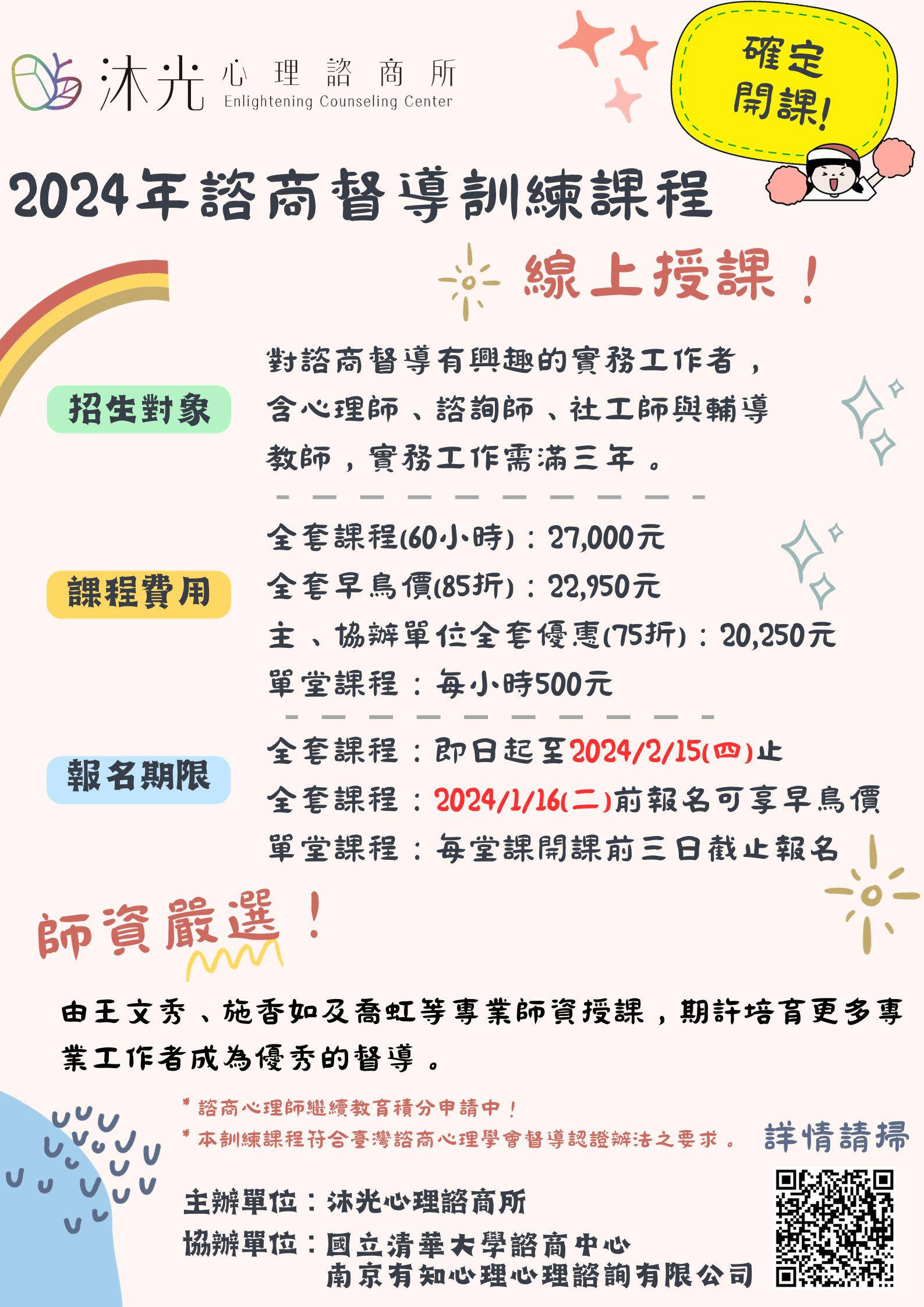 (已截止)2024年諮商督導訓練課程-線上授課!!