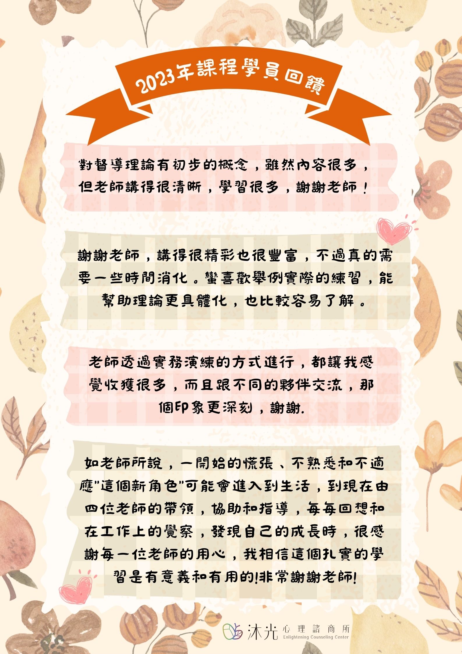 - 諮商心理師繼續教育積分(申請中)。