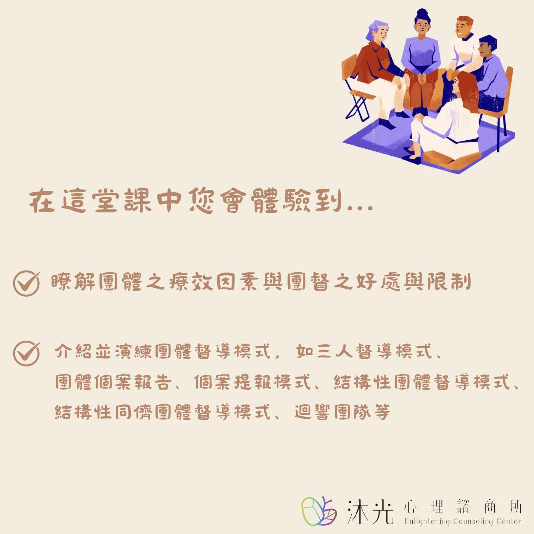 本堂課為線上課程,王文秀老師將說明團體督導之優點與限制,並介紹及演練團體督導之理論模式。想要瞭解如何以團體形式做督導的夥伴,把握早鳥報名機會!!