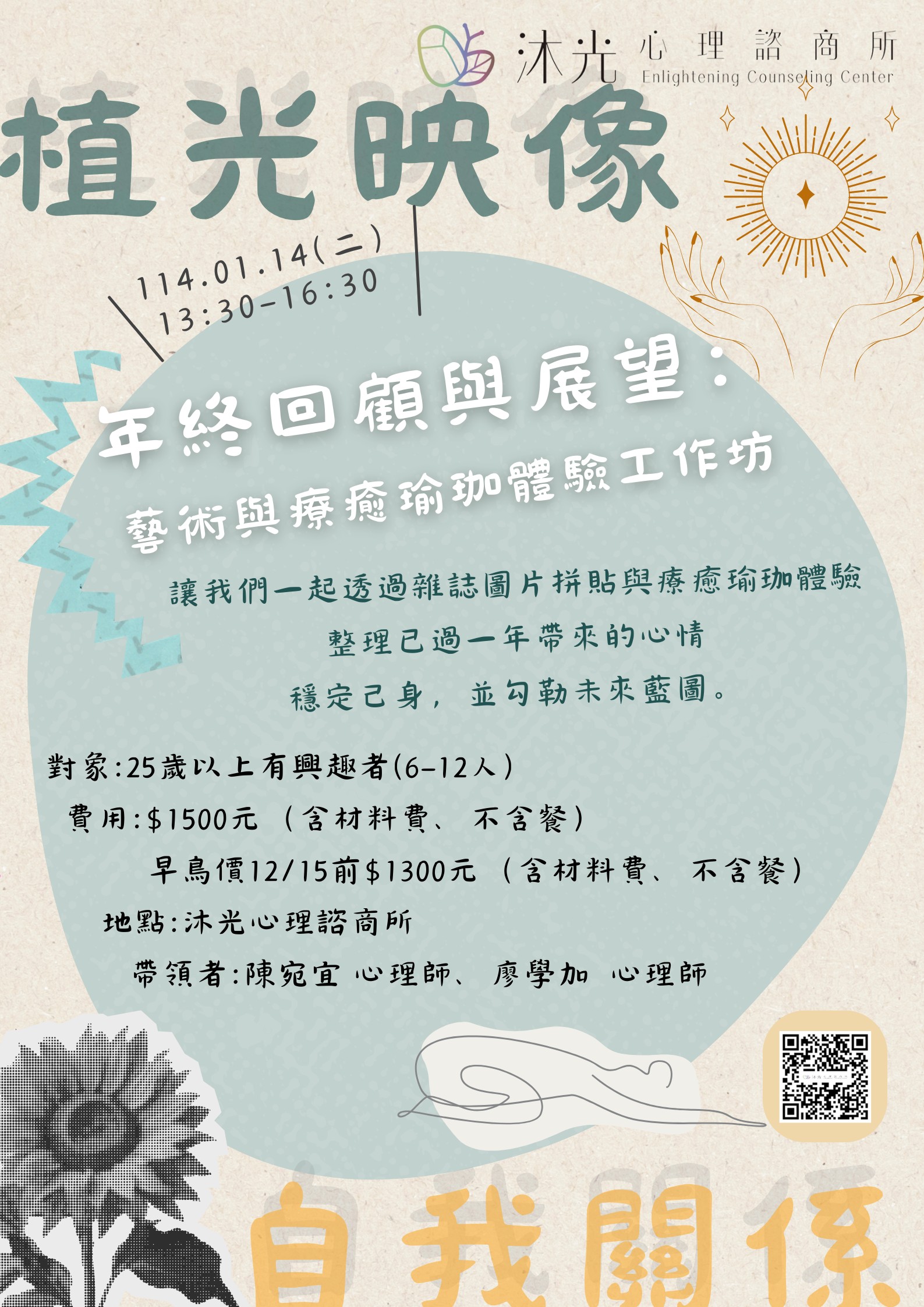邀請您與我們一起,透過雜誌圖片拼貼與療癒瑜珈體驗,整理已過一年帶來的心情🧘🏻