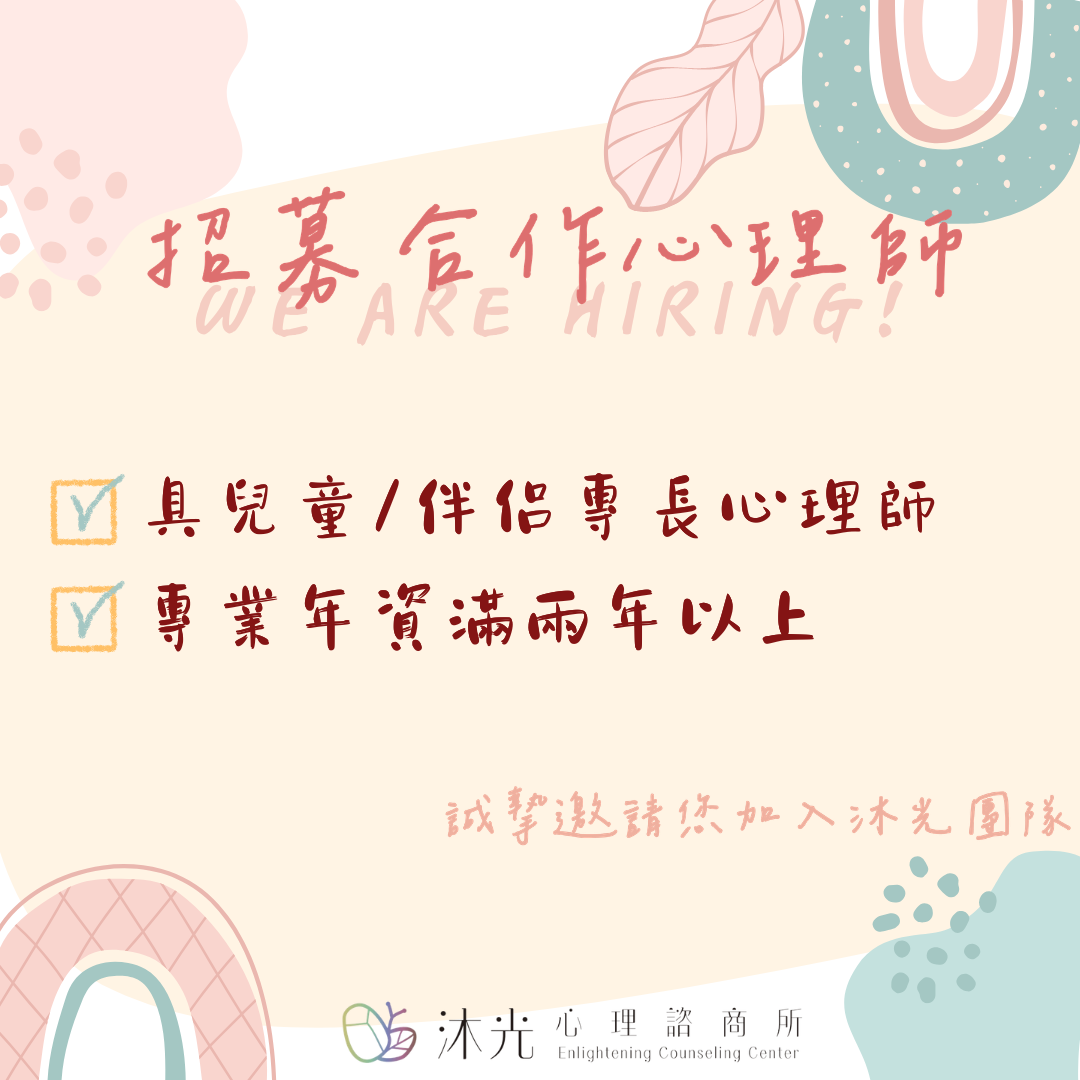 大家好,沐光心理諮商所徵求新夥伴的加入!